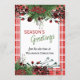 Unique, classic, trendy, pretty and decorative corporate Holiday card. Cute Happy Holidays greeting text and room to customise or personalise with a message of your choice on the rear of the card. Framed by Burgundy wine red berries and dark green foliage wreath bouquets on a classy red and white plaid tartan gingham pattern background.