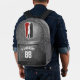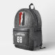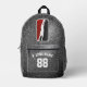 Show your love for the game with this customisable basketball backpack featuring bold black and red tones against a faux glitter background. The design centres around a dynamic silhouette of a basketball player going in for a layup, housed in a stylised cartouche shape. Add your name and jersey number for a personalised touch that’s perfect for players, fans, and coaches alike. Whether for game day, team banquets, or fan gear with flair, this school book bag is a slam dunk for basketball lovers.