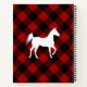 A warm and cosy buffalo plaid notebook with a white silhouette of a horse and a customisable name/title that can be changed to anything you like.