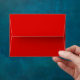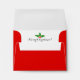 Custom red Christmas envelopes with holly leaves and berries. Cute Holiday design with personalised seasons greetings or family name. Add your own wishes or surname. Elegant script calligraphy typography template.