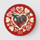 This heartwarming wall clock is special because it transforms a standard timepiece into a cherished romantic keepsake by featuring your favorite couple's photo at the heart of the design. Set against a bold crimson background with soft cream decorative hearts and customizable names, it tells a unique story of love and devotion. It is a perfect gift for anniversaries, weddings, or Valentine's Day, offering a deeply personal and elegant touch to any home.