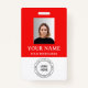 Custom red Employee Badge with Photo, Logo, QR ID Badge