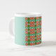 Custom Red Folk Art Flower & Leaf Pattern Large Coffee Mug