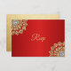 Elegant, modern yet traditional red Indian RSVP wedding response cards. Background colour can be changed. Beautiful gold and diamond Mandala flower design. Back has faux gold foil. Editable templates - add your text. Contact designer for other variations.