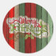 Custom Red Green Weathered Wooden Planks Pattern Classic Round Sticker
