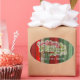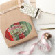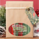 Beautiful, unique, classic, trendy, pretty and decorative Christmas holiday greeting label with a classic Holiday dark red, forest green, and white coloured 'Merry Christmas' quote text on a rustic weathered wooden country cottage farmhouse style planks pattern background. With room to easily customise or personalise with your company or family name.
