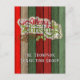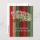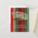 Beautiful, unique, classic, trendy, pretty and decorative Christmas holiday greeting card with a classic Holiday dark red, forest green, and white coloured 'Merry Christmas' quote text on a rustic weathered wooden country cottage farmhouse style planks pattern background. With room to easily customise or personalise with your company or family name, and room on the backside to write or print your own Holiday wish.