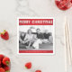 Custom red and white Merry Christmas photo paper napkins with customisable photo and text.