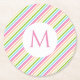 Custom Red Pink Yellow Blue Green White Stripes Trendy Monogram Modern Template Round Paper Coaster.