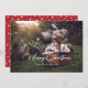 Custom red photo Christmas cards featuring a snow overlay and a beautiful festive script title on the front and stars on a plain red background at the back. The background can be changed to any colour. Easily personalise these red photo Christmas cards with your image and a family name.
