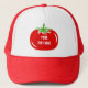 Custom red tomato trucker hat. Funny caps with personalizable quote or saying. No matter if it's called a fruit or vegetable, it's healthy food. Cute salad icon for vegan, vegetarians, politics, party and other. Fun design for chef cook in the kitchen or restaurant. Trendy headwear and costume accessories.
