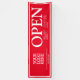 Ensure customers know when you're open with this bold red and white business banner. Personalise it with your logo, business hours, and website for a professional and informative storefront display