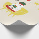 This lovely cute little bear is sitting on a chair, wearing his Christmas hat. He happily holds a gift box and stands next to a Christmas tree decorated with Christmas ornaments and colourful stars. Personalise this Christmas wrapping paper with your initials or name.