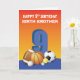 Bounce around some fun birthday greeting balls for a special boy that is celebrating a 9th birthday. The only way you can do that is by giving him this card. This also comes with a personalized relationship on the front.