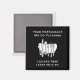 A custom magnet template for your restaurant or food industry business with white block letters and room for two lines of text top and bottom, and an elegant design featuring a set of silverware on a pretty white table napkin embellished in greys and black on a black background. Customise it to add your name or message, change background colours, even save your design for later.