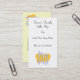 This custom business card template has a simple design of a place setting of blue silverware on a pretty golden yellow table napkin embellished in golds. The font is a retro script. Click Customise It to change fonts, background colours and more, even save your design for later.