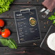 Custom restaurant menu | Black modern photo menu, A simple custom logo and 4-photo takeout menu template in a modern minimalist style on a black background.