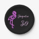 👉 Put a smile on a face with this custom retro 30th birthday party paper plates, with a tropical neon pink flamingo!