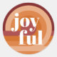 Contemporary classic Christmas holiday season envelope seal label with light and dark red, coral and pastel peach orange coloured abstract pattern and JOYFUL wish text in crisp white.