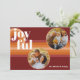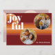 Contemporary classic Christmas holiday season greeting card withight and dark red, coral and pastel peach orange coloured abstract pattern with real gold foil JOYFUL wish text. With room to customise or personalise with two photos, a family name (or individual names) on the front, and a customisable season greeting message on the backside of the card.