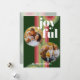 Contemporary classic Christmas holiday season greeting card with light and dark green, pink, and red coloured abstract pattern with crisp white JOYFUL wish text. With room to customise or personalise with two photos, a family name (or individual names) on the front, and a customisable season greeting message on the backside of the card.