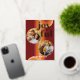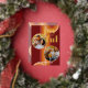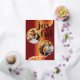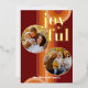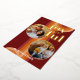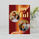Contemporary classic Christmas holiday season greeting card with light and dark red, coral and pastel peach orange colored abstract pattern with real gold foil JOYFUL wish text. With room to customize or personalize with two photos and family name (or individual names) on the front, and a customizable season greeting message on the backside of the card.