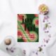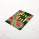 Contemporary classic Christmas holiday season greeting card with light and dark green, pink and red coloured abstract pattern with real gold foil JOYFUL wish text. With room to customise or personalise the text on the front, and family name (or individual names) and a customisable season greeting message on the backside of the card.