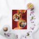 Contemporary classic Christmas holiday season greeting card with light and dark red, coral and pastel peach orange coloured abstract pattern with real gold foil JOYFUL wish text. With room to customise or personalise with two photos and family name (or individual names) on the front, and a customisable season greeting message on the backside of the card.