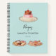 A beautiful vintage retro desserts illustration on a dusty blue background recipe cookbook. Personalise the custom cookbook to your name and volume number. Perfect gift for foodies, cooks, chefs, lovers of food and the kitchen.