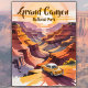 This watercolor-style illustration of the Grand Canyon blends soft pastel tones with vintage retro charm. Inspired by 1950s mid-century travel posters and plein air painting traditions, the scene captures sunset light washing across the canyon’s layered cliffs. Warm oranges, muted pinks, and lavender shadows create a dreamy, nostalgic mood, while a classic mid-century car parked at the rim evokes the romance of desert road trips.