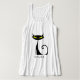This personalised tank top design features a retro mid century modern "atomic" black cat with big yellow eyes and a curly tail.