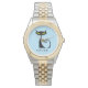 This personalised two toned bracelet e-watch design features a retro mid century modern "atomic" black cat with big yellow eyes and a curly tail.