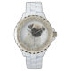 Custom Rhinestone White Enamel Pug Watch