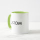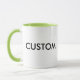 Custom Ringer 11oz Ceramic Mug - LIME GREEN Lip & Handle, 3.8” high x 3.2” diameter. 11 oz or 15 oz options. Microwave and dishwasher safe. FDA food and beverage safety approved. Black, maroon, hunter green, light blue, lime, navy blue, orange, pink, yellow, and red colour options.