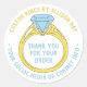 Large round thank you stickers for a custom ring maker. The sticker includes a custom Thank You message, your tagline or name and a place to put your social media or contact info. The stickers are decorated with a diamond ring illustration. Great for a beginner or specialty wedding or engagement ring and jewelry crafter. Use the stickers to add a special personalized touch to the packaging of your finished product.