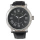 A bold wristwatch that blends functionality with personalisation. This striking timepiece features Roman numerals for hour markers and dashes for seconds, along with two customisable text fields currently displaying "Best Dad Ever" and "Since 19XX," which can be tailored to your liking. You can personalise these fields with a name, special message, birth date, anniversary, retirement date, or any meaningful detail. Its minimalist design makes it perfect for both personal and professional settings, offering versatility for any occasion. This wristwatch is an excellent gift for loved ones or a timeless addition to your collection.