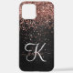 Custom Rose Gold Glitter Black Sparkle Monogram iPhone Case