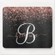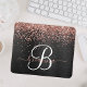 Custom Rose Gold Glitter Black Sparkle Monogram Mouse Pad