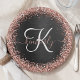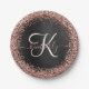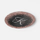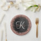 Custom Rose Gold Glitter Black Sparkle Monogram Paper Plate