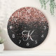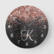 Custom Rose Gold Glitter Black Sparkle Monogram Round Clock