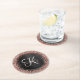 Easily personalise this trendy elegant paper coaster design featuring pretty rose gold sparkling glitter on a black brushed metallic background.