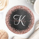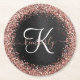 Custom Rose Gold Glitter Black Sparkle Monogram Round Paper Coaster