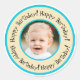 Custom Round Birthday Photo Beige & Turquoise Classic Round Sticker