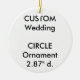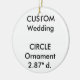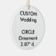 Custom ROUND CIRCLE White Ceramic Ornament Decoration 2.87", with strand of gold thread for hanging, full-colour, full-bleed printing, photos, images and personal message printed on both sides. Great for displaying romantic messages or photos of the bride & groom.
