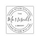 This stylish design features your library name in a hand written style script font. There is a circular border with "PLEASE RETURN WITH CARE" curved typography. Customise these stamps by typing your custom name in the template boxes.