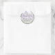 Custom round lavender bohemian wedding stickers with customisable purple text
