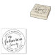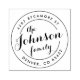 Custom return address stamp with family's name in calligraphy script, circled by the address in a modern font. Use for wedding invitations, announcements and holiday cards. To change text size and placement, use the Customise / Personalise button.