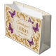 Make your gift presentation as stunning as the celebration itself with this custom royal gold and purple butterfly large gift bag. Designed with elegant gold accents, delicate purple butterflies, and floral details, it creates a beautiful and feminine vintage-inspired look. Personalise with your own text or name to make it perfect for birthdays, sweet sixteens, quinceañeras, or any royal-themed party. A thoughtful way to add elegance to your gift giving.