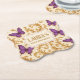 Custom Royal Gold Purple Butterfly Birthday Paper Coaster