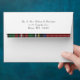Lovely custom envelope done in white, with the colourful traditional red, green, blue, white, and yellow Royal Stewart tartan pattern, on the inside of the envelope and as a thin border, on the back flap. Black custom script text return address, on the back flap, is ready to personalise. Perfect addition to our Royal Stewart plaid wedding invitation set and thank you card.